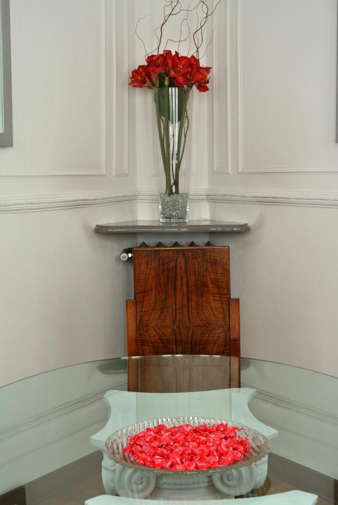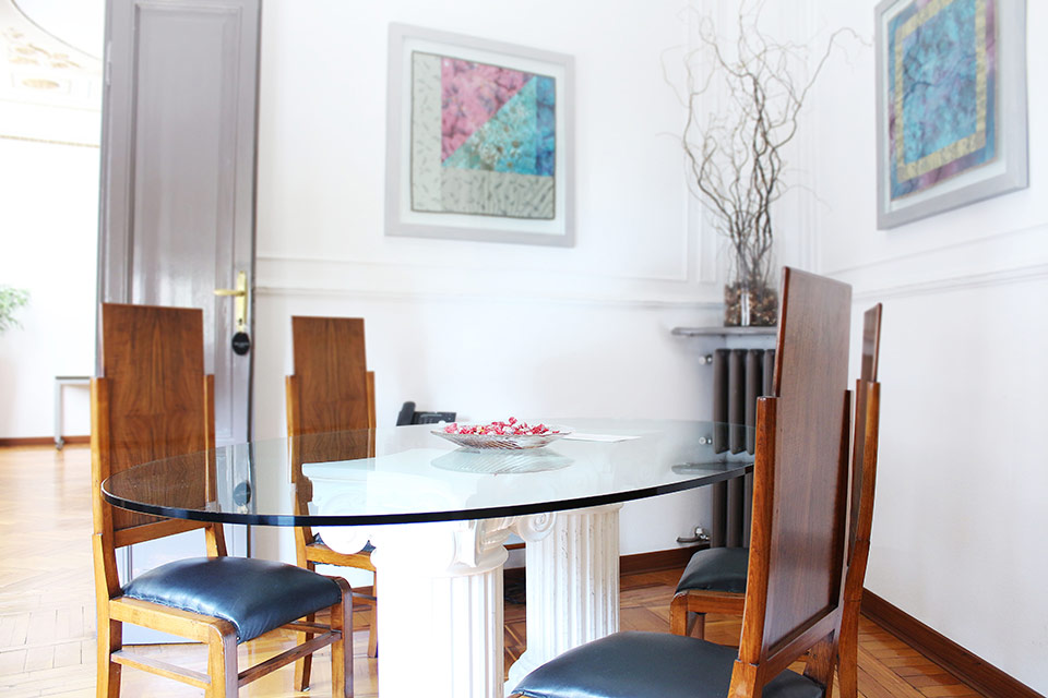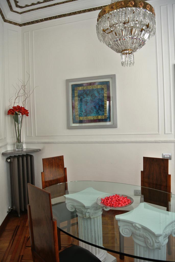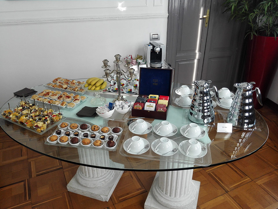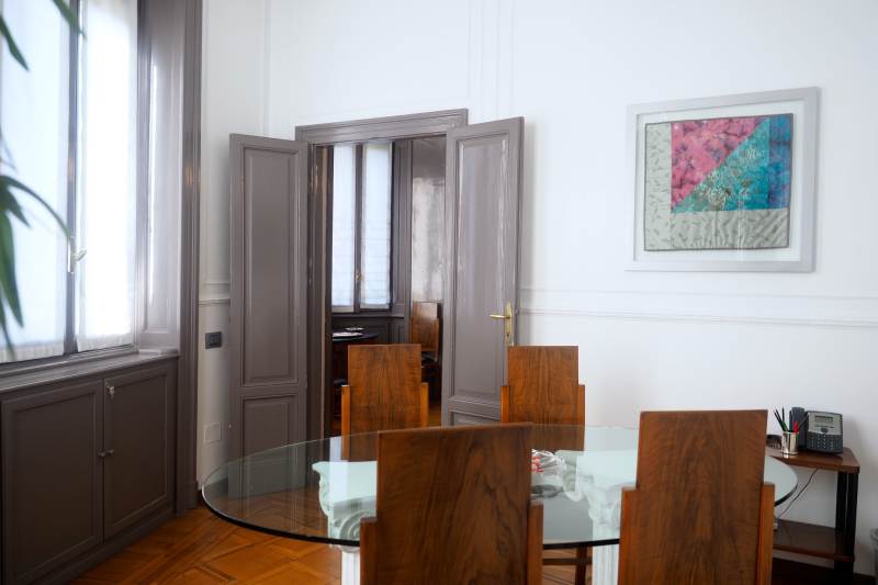 Grazie all’ampio tavolo ovale in cristallo e alla tipologia particolare dello spazio, caratterizzato da una pianta triangolare e un bowindow circolare degli Anni ’30, si presta molto bene per essere utilizzata in maniera indipendente quale sala di grande fascino per colazioni di lavoro riservate per 4-6 persone.